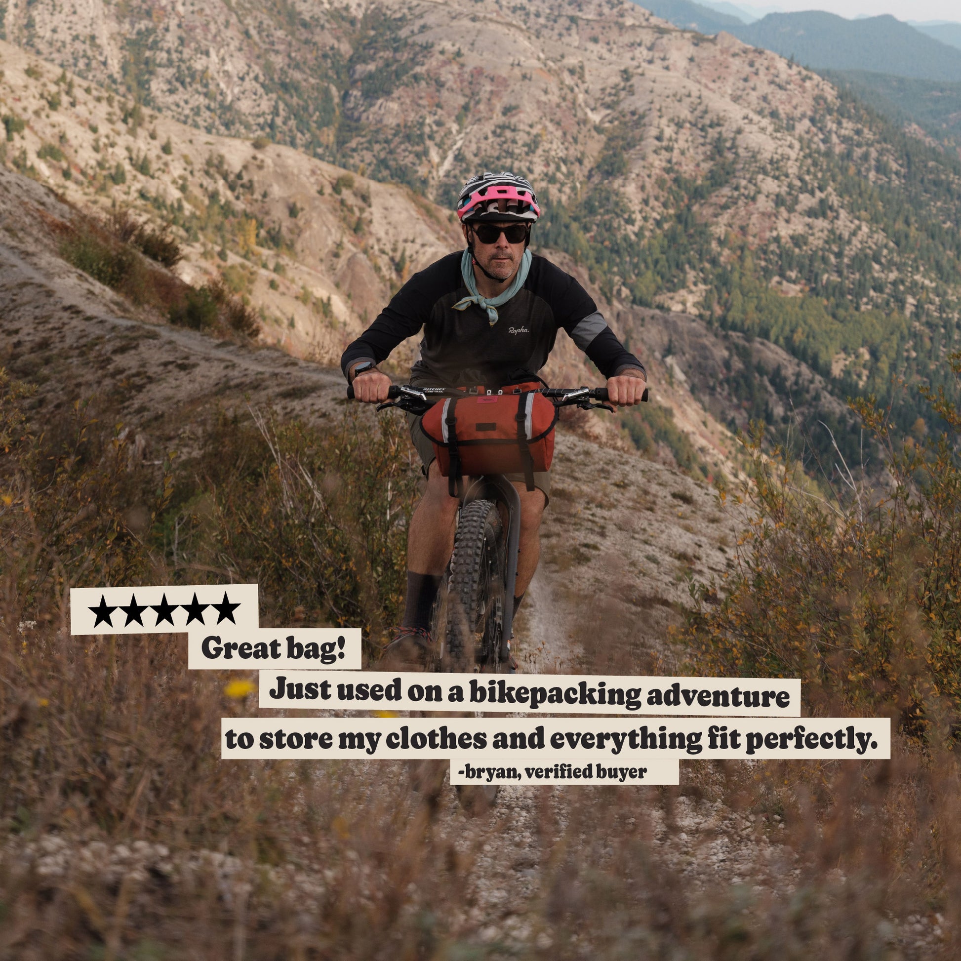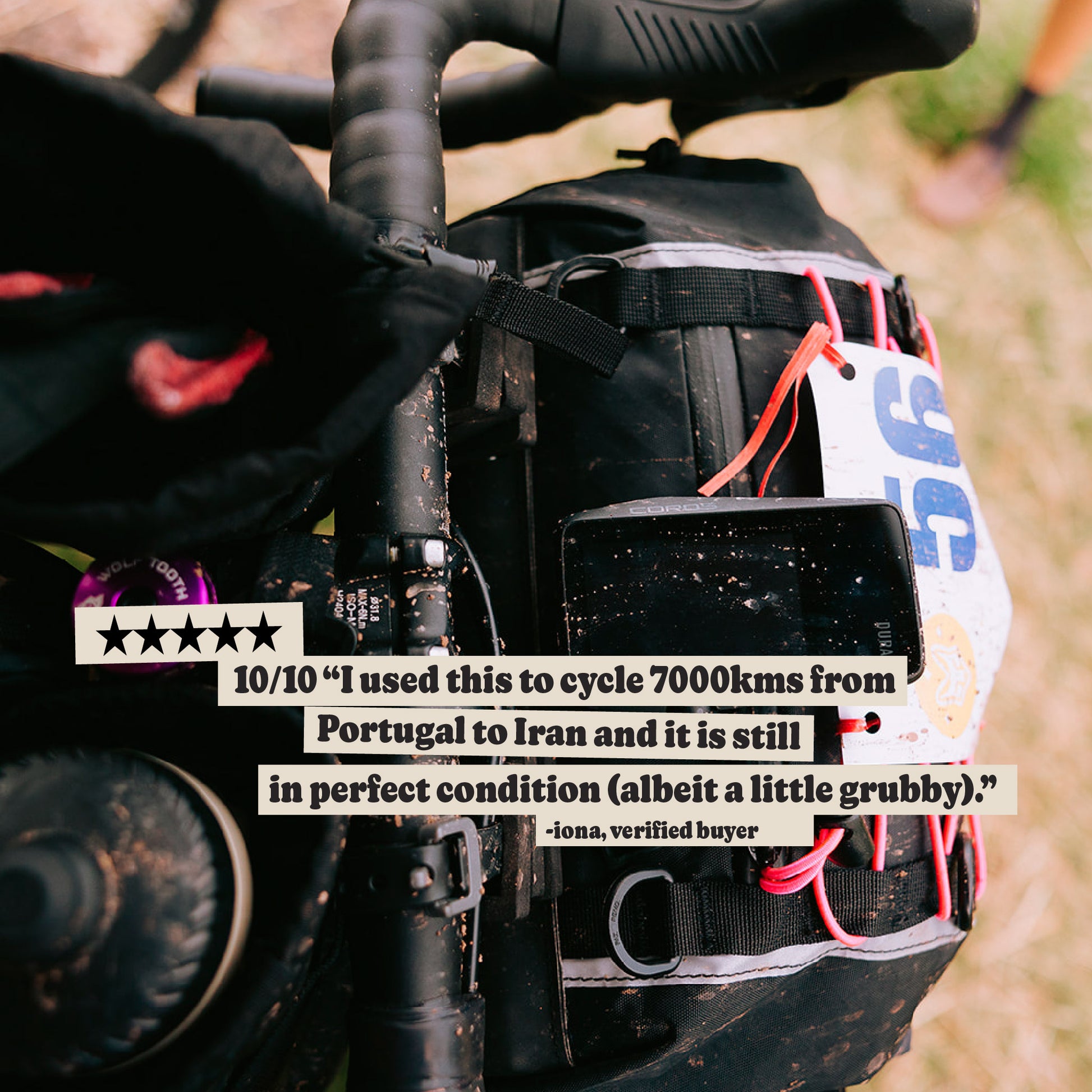 Great bag! Just used in on a bikepacking adventure to store my clothes and everything fit perfectly. Mounted to my handlebars firmly/securely without issue.