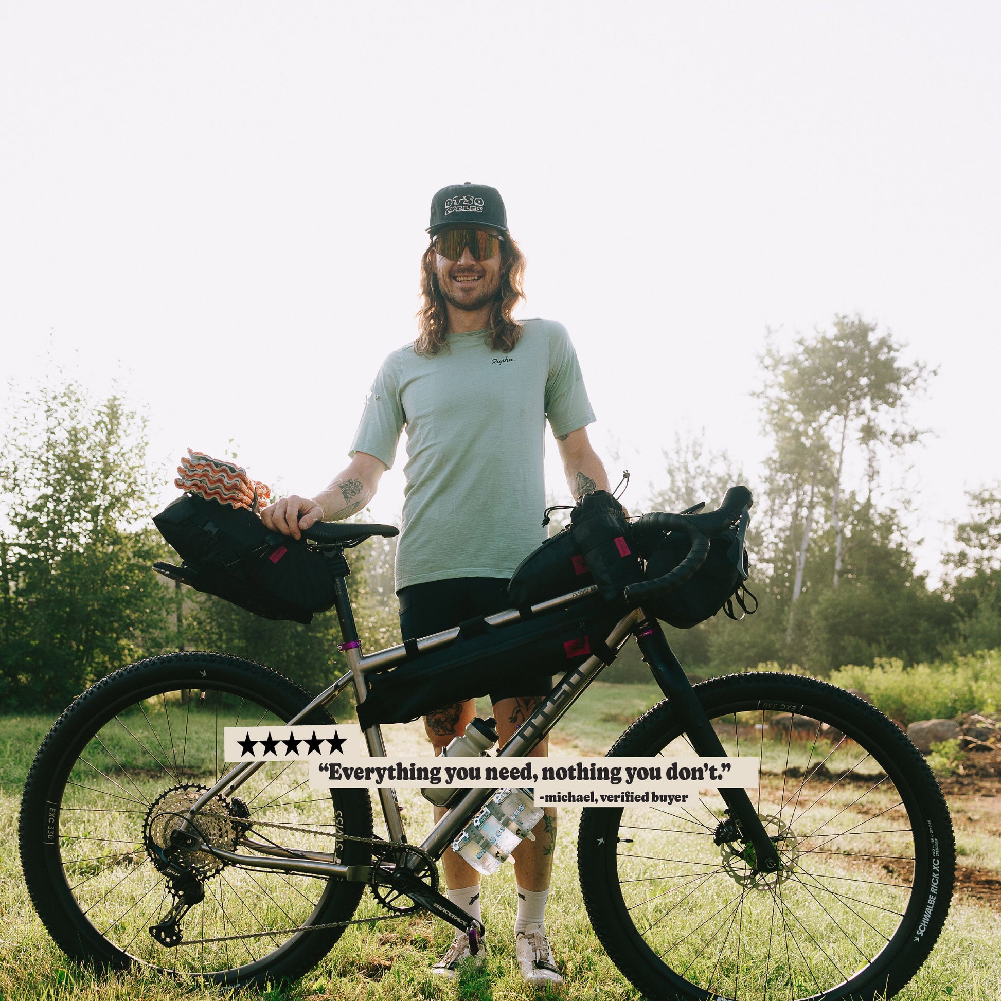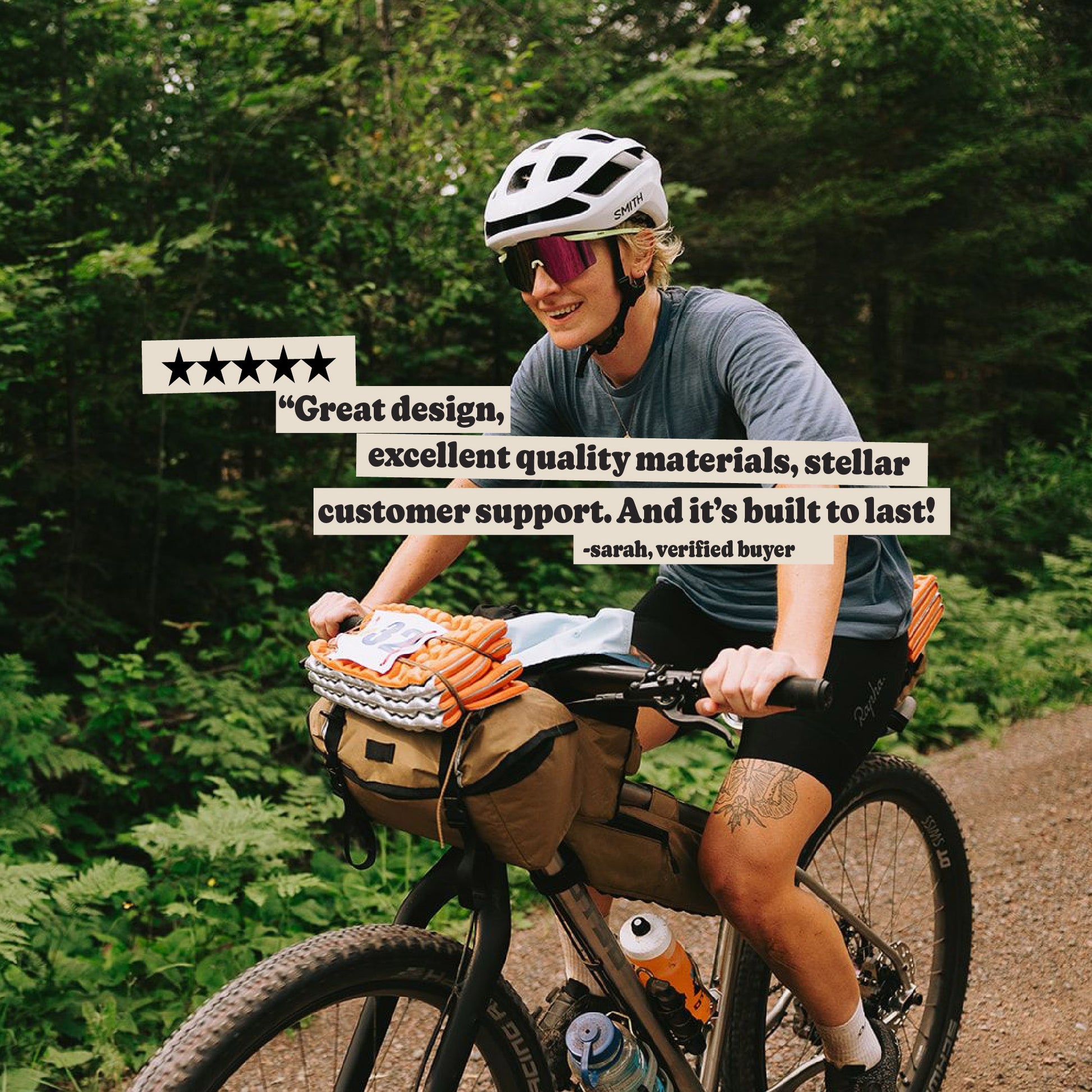 This is a great sized bag for daily riding and bikepacking. I put it on my Cutthroat for long rides and my wife uses it for camping (I have a larger bag for camping). It rides high enough to not contact her front tire even when loaded a little heavy. I love the expandable pocket for bulky layers and the small pocket up top for EDC items. I’ve also bought over the years a Swift Fabs bag, panniers, a toptube and the triangle frame bag. All thoughtfully and well made!